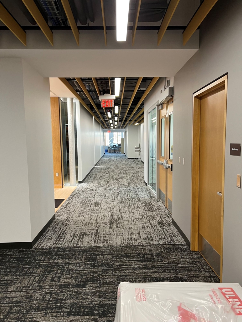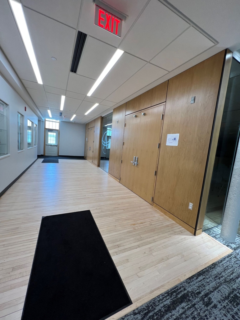 The remodel included comprehensive mechanical and electrical system upgrades, space reconfiguration for administrative use, restoration of the original three-story façade, integration of preserved materials such as brick and hardwood flooring, and infrastructure support for boardroom expansion and staff offices.